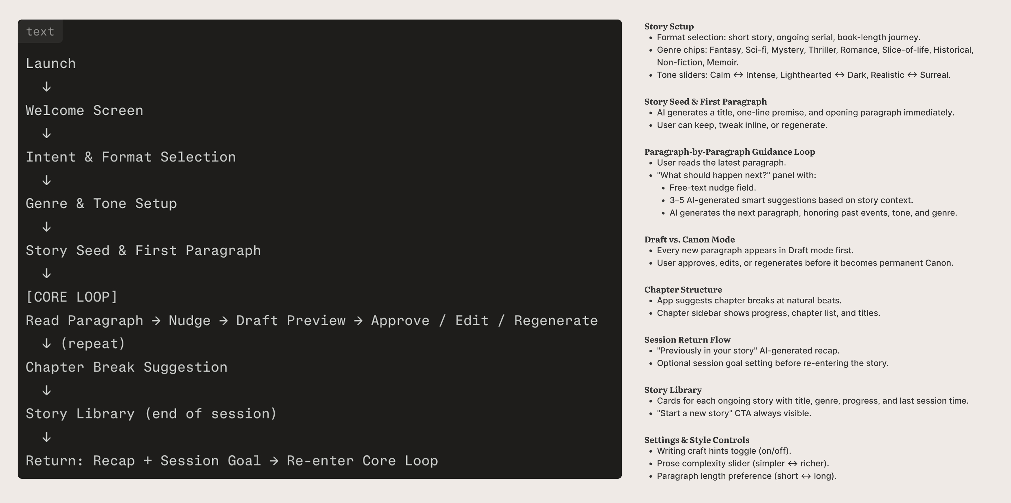 "When I sit down wanting to read something made for me, I want the app to spin up a premise from a few preferences, so I can dive in without planning anything."