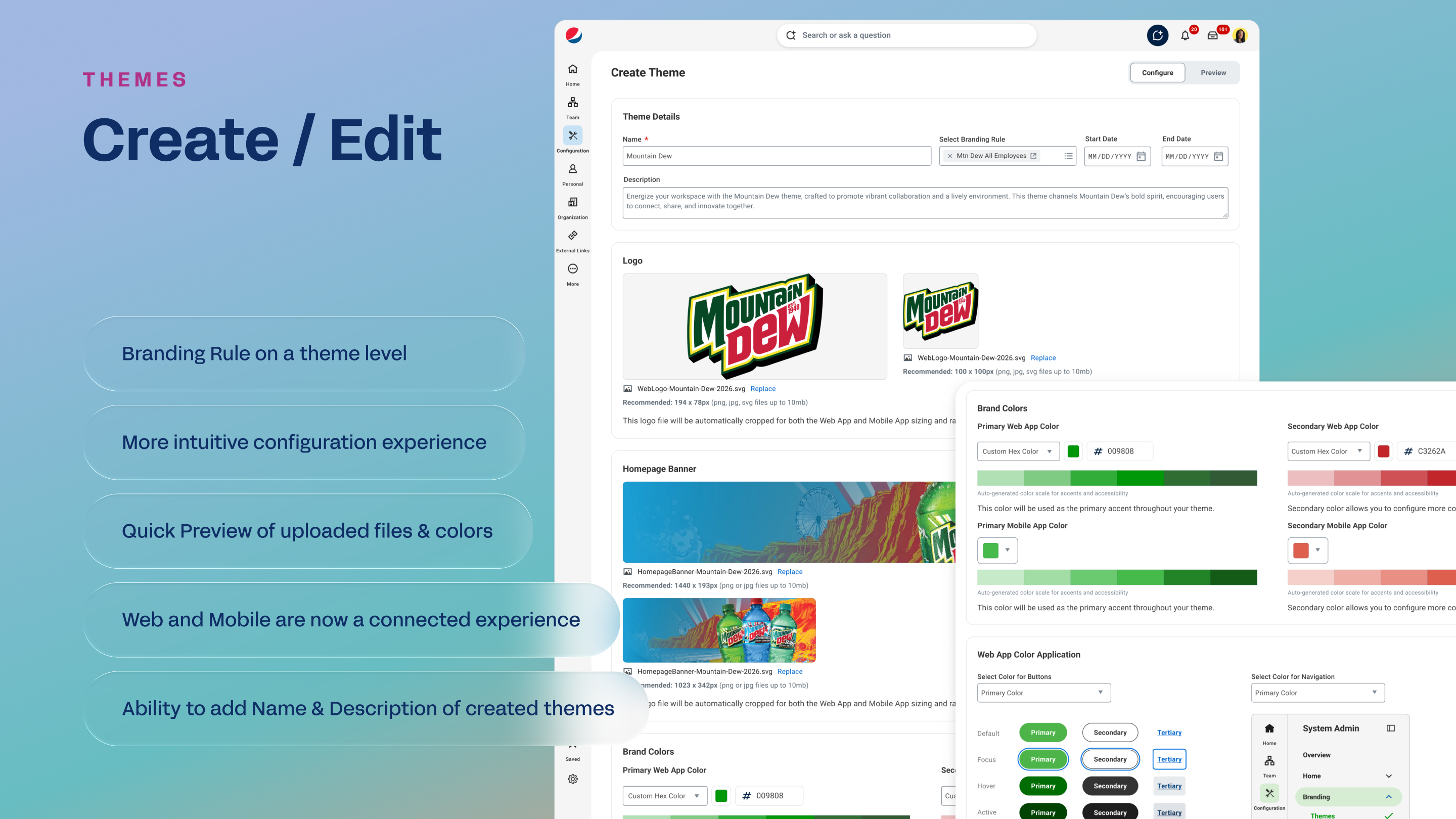 A single workflow for branding setup that spans both web and mobile, closing the fragmentation gap.